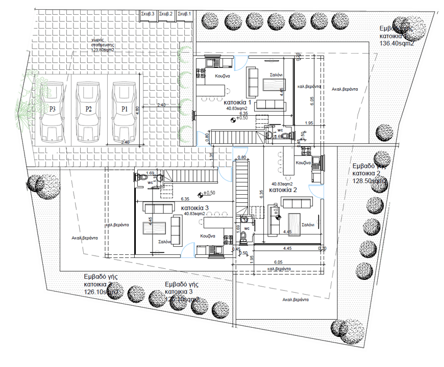 The project includes the construction of 3 (three) semi-detached houses on a single piece of land, with a total area of 530 sq.m. in Pera, with registration number 2/223-378, section 03 and plot 333, in the Nicosia District. The construction will be carried out with the Crosswise prefabricated system, in accordance with the relevant studies and specifications. Pera Orinis is growing mainly towards Psimolofou, where it has almost merged.